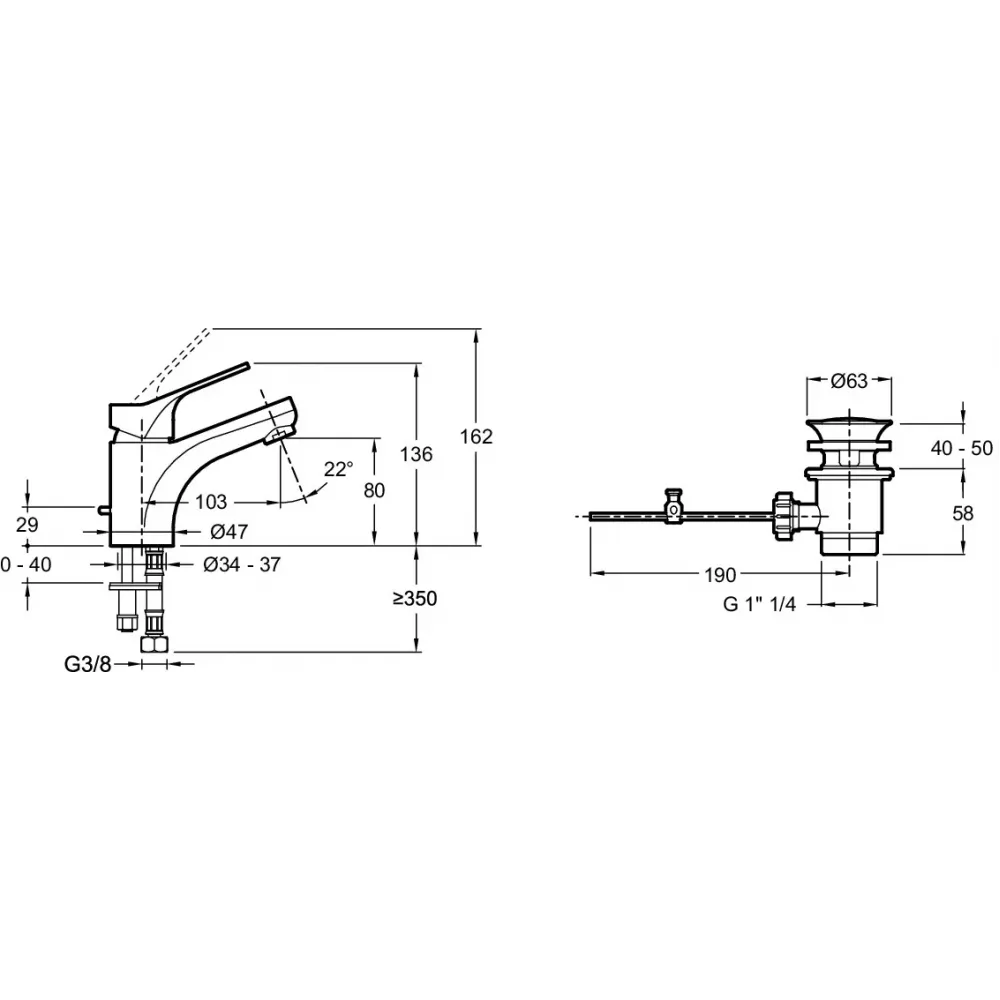 Расстояние между центром излива и центральной осью корпуса:103 мм
