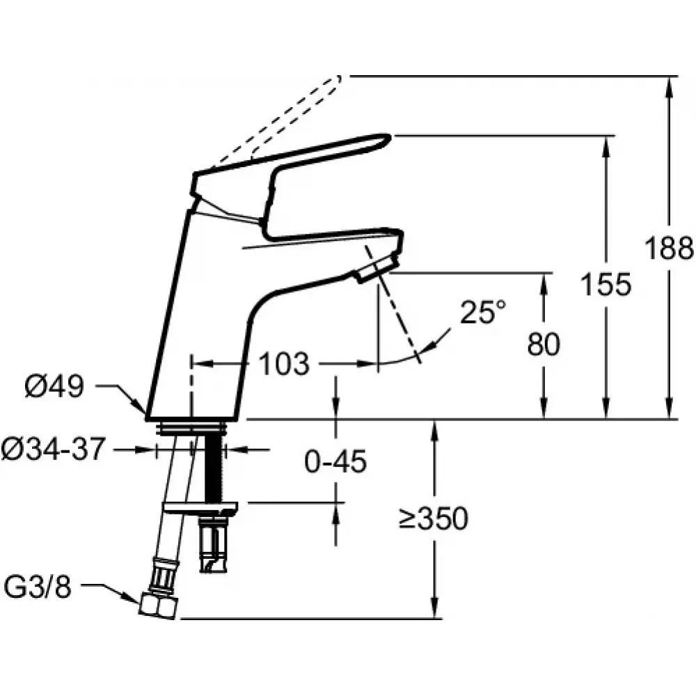 Однорычажный смеситель для раковины, высота под изливом 80 мм