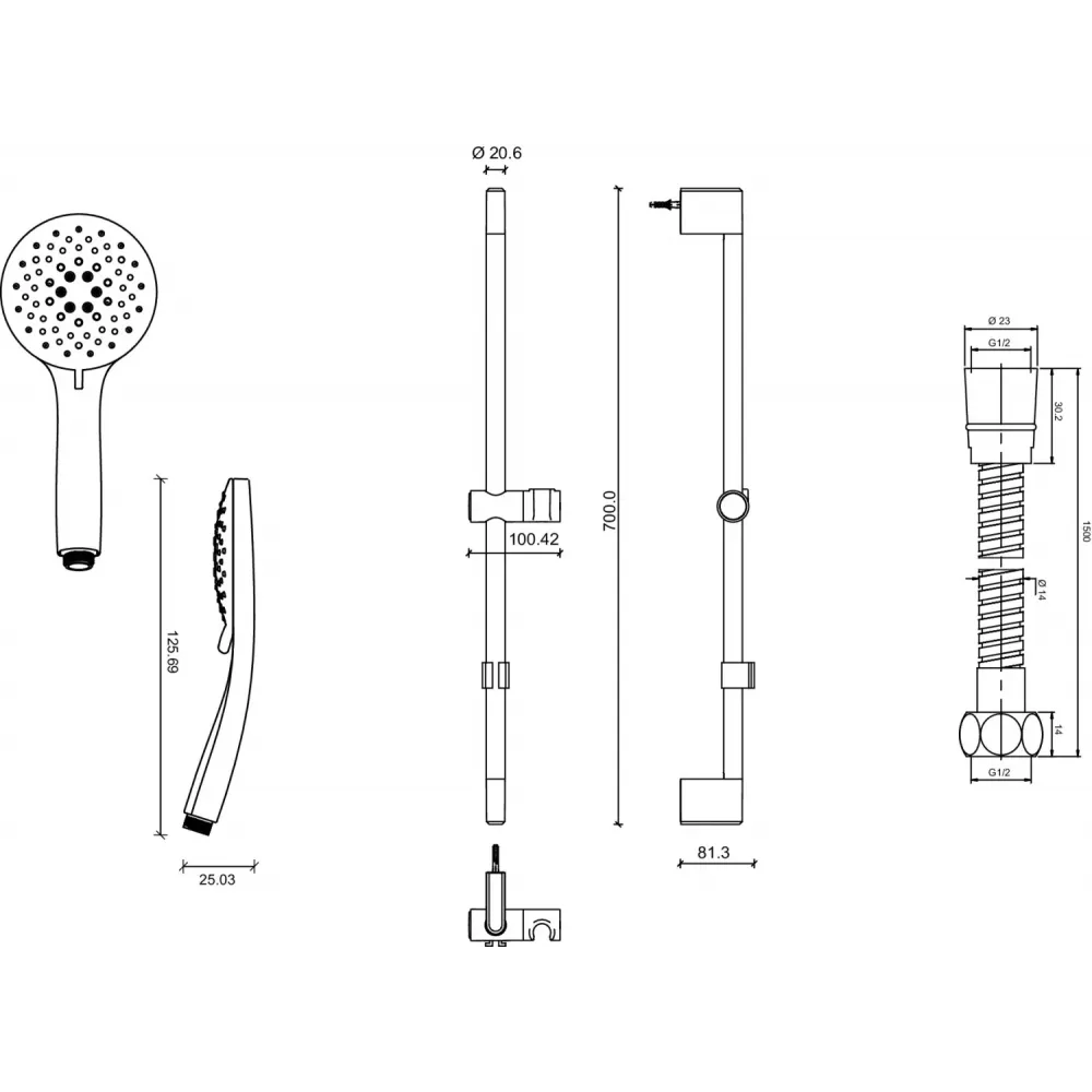 Душевой гарнитур: штанга 70 см, лейка 110 мм на 5 режимов, шланг с защитой от перекручивания