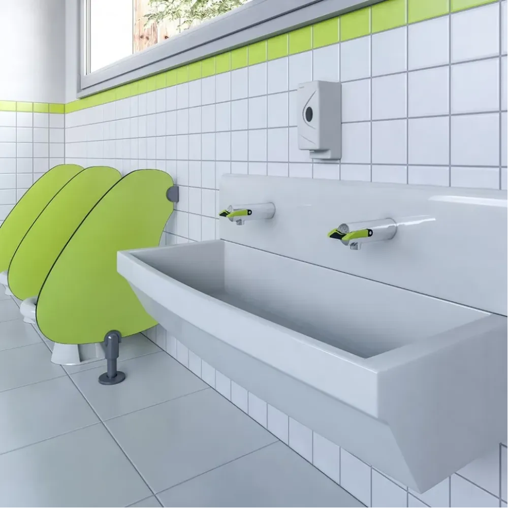 Плавное нажатие: подходит для детей, ЛОФВ и т.д. Экономия воды: согласно модели, два времени подачи воды (7 сек. для ополаскивания / 11 сек. для помывки). Простота использования : индикаторы на смесителе. Надежность : запатентованный механизм автоматической очистки, самозакрывающаяся система.