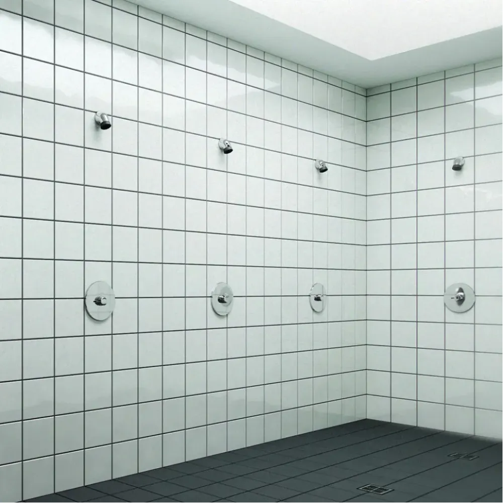 Порционный кран для душа 38222, встраиваемый в стену с антивандальной накладкой, что делает вывод сантехники PRESTO из строя крайне затруднительным.