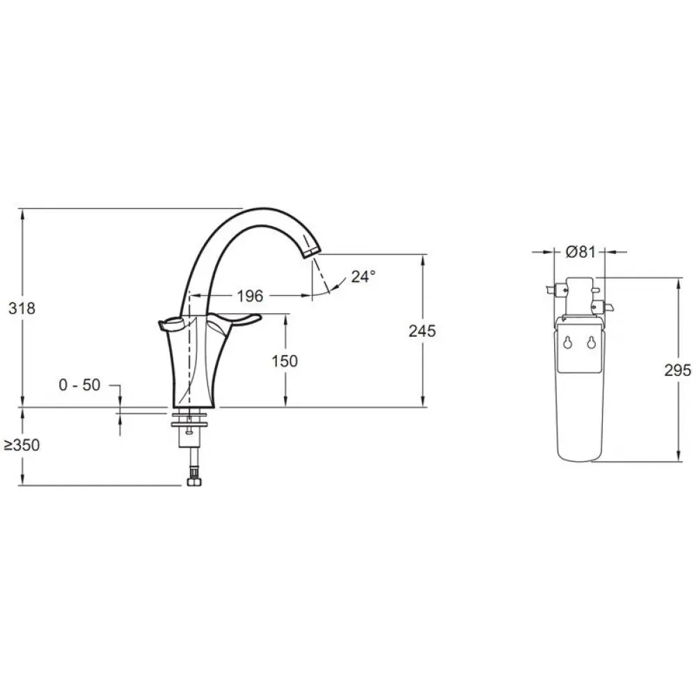Два отдельных канала для фильтрованной и водопроводной воды.