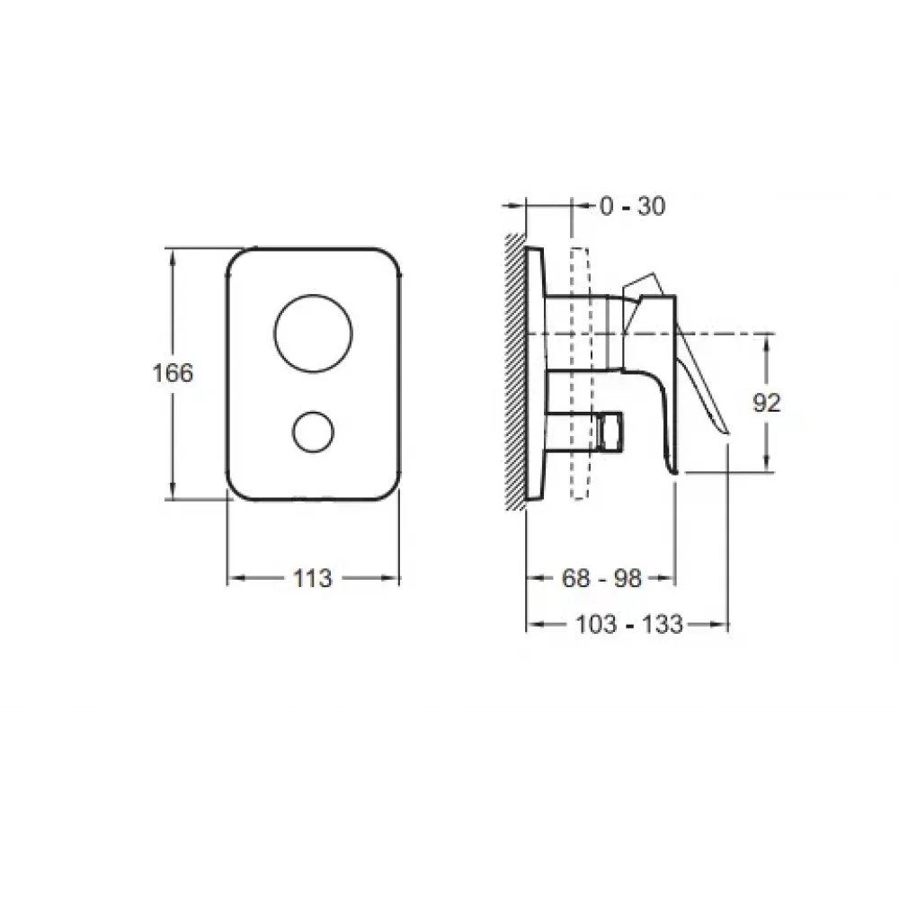 Технические характеристики Лицевая часть встраиваемого смесителя Aleo хром, 2 функции E98717-CP Jacob Delafon