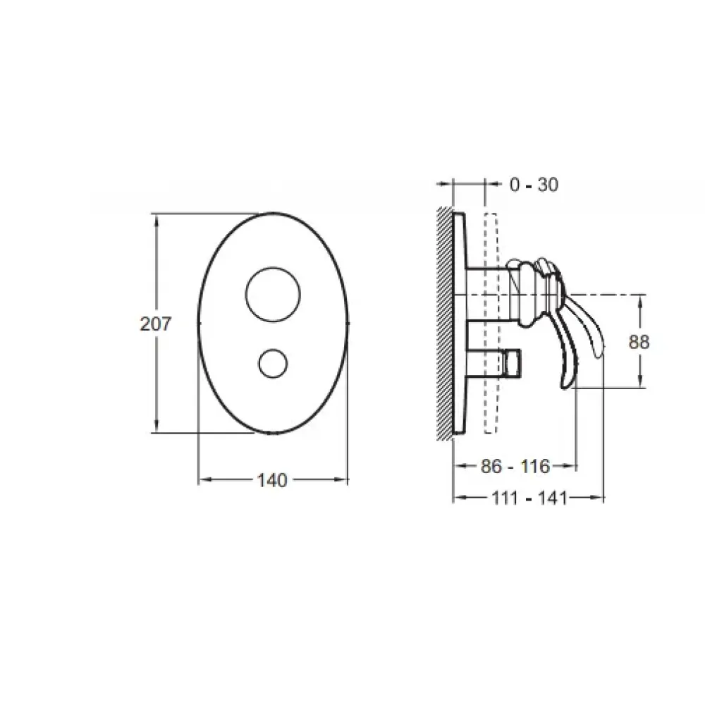 Технические характеристики Лицевая часть встраиваемого смесителя Fairfax 2 функции E98722-CP Jacob Delafon