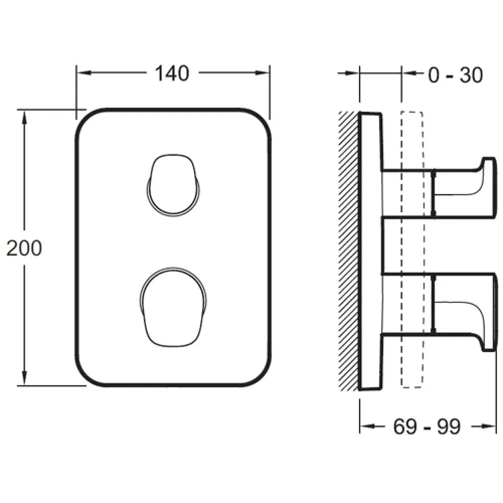 Технические характеристики Лицевая часть встраиваемого смесителя HYBRID 2 функции E75389-CP Jacob Delafon