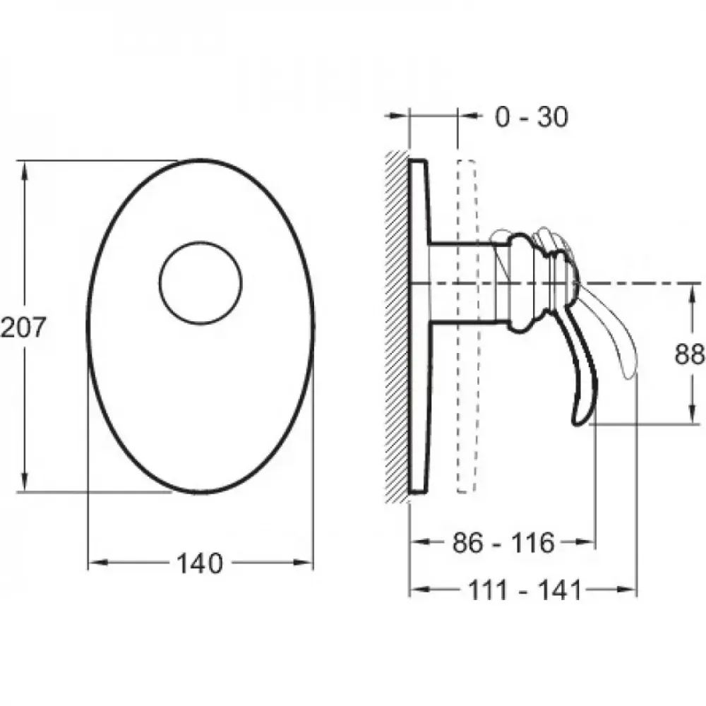 Технические характеристики Лицевая часть встраиваемого смесителя Kandel 1 функция E98703-CP Jacob Delafon