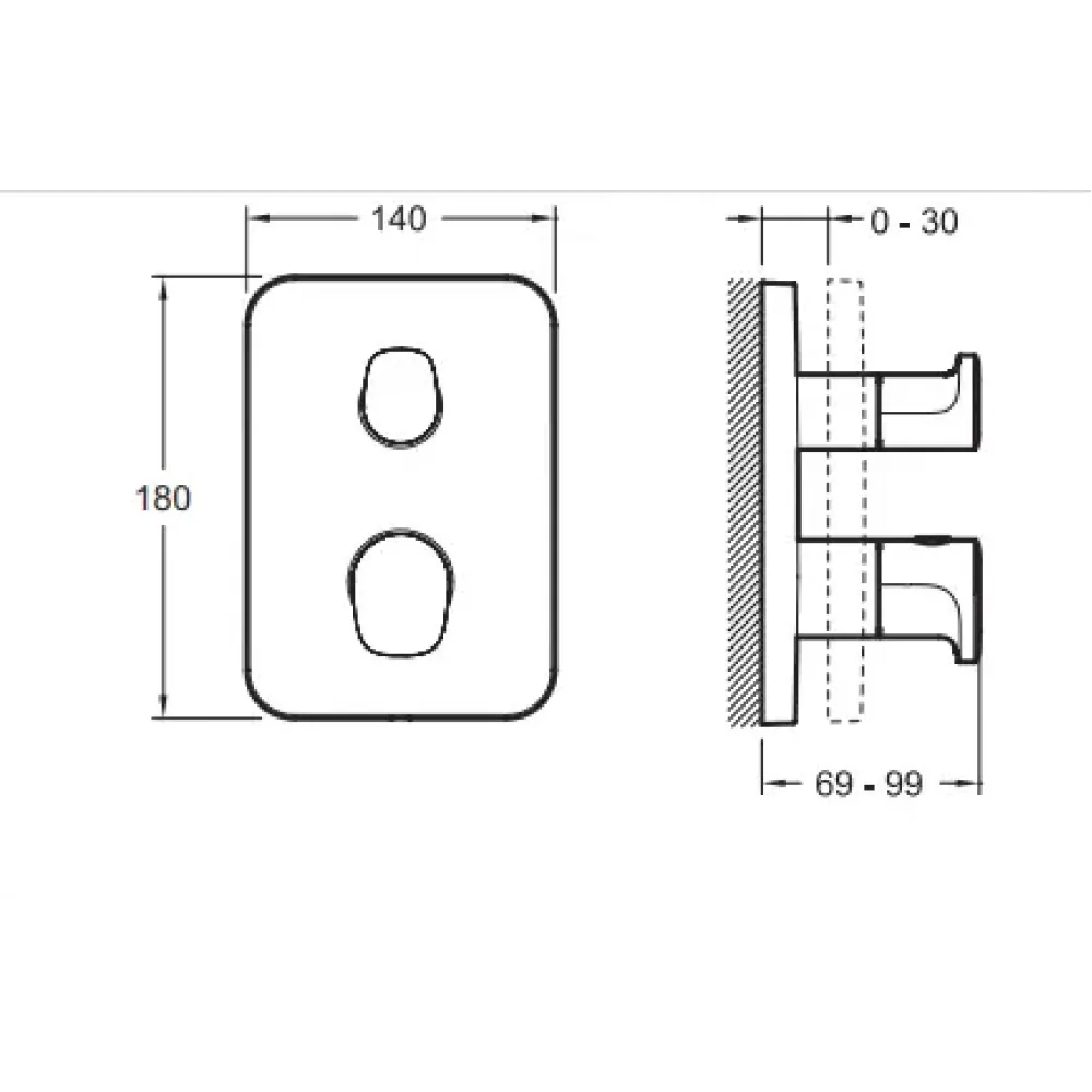 Технические характеристики Лицевая часть встраиваемого смесителя Modulo 2 функции E75385-CP Jacob Delafon