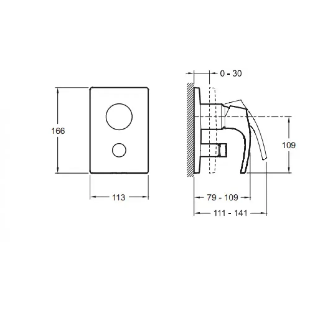 Технические характеристики Лицевая часть встраиваемого смесителя Symbol 2 функции E98724-CP Jacob Delafon