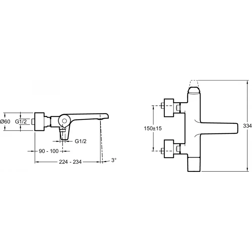 Однорычажный настенный смеситель для ванны/душа.
