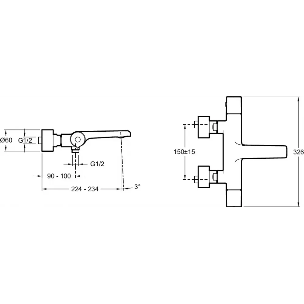Технические характеристики Настенный смеситель Avid с выходом на душ (без лейки), неповоротный излив, термостат E97386-CP Jacob Delafon