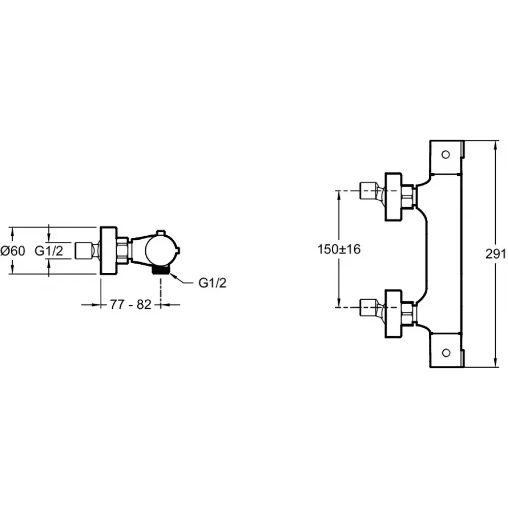 Технические характеристики Настенный смеситель без излива Brive без лейки, термостат E24334-CP Jacob Delafon