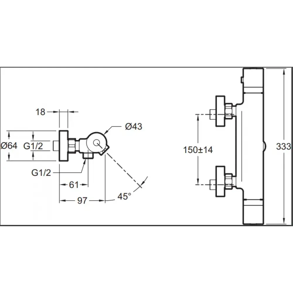Технические характеристики Настенный смеситель без излива Edgar 2 функции, термостат, без лейки E29847-CP Jacob Delafon