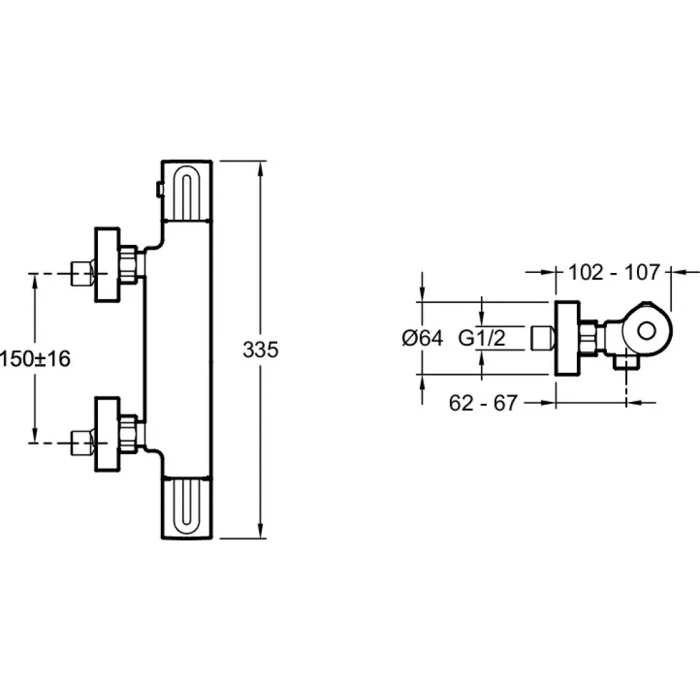 Технические характеристики Настенный смеситель без излива Metro чёрный цвет, без лейки, термостат E24394-BL Jacob Delafon