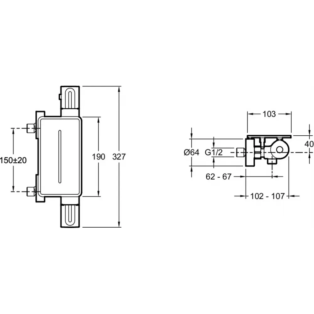 Технические характеристики Настенный смеситель без излива Metro с полочкой, чёрный цвет, без лейки, термостат E21767-BL Jacob Delafon