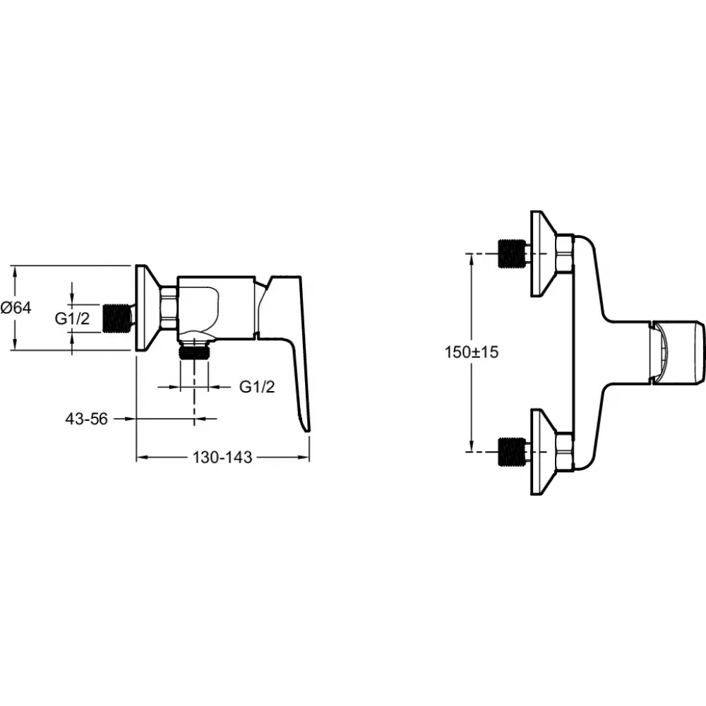 Технические характеристики Настенный смеситель без излива Oscar матовый, чёрный цвет, без лейки E29843-BL Jacob Delafon