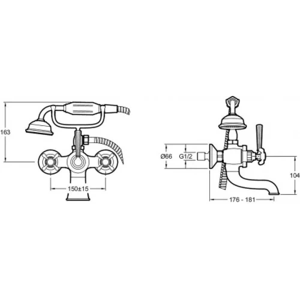 Технические характеристики Настенный смеситель Cleo лейка в комплекте, золото, поворотный излив E24313-BGG Jacob Delafon