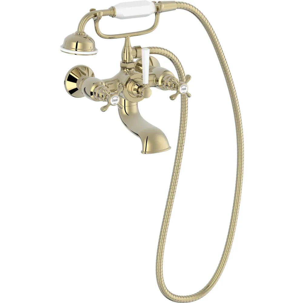 Cleo, настенный смеситель, поворотный излив, лейка в комплекте, золото, арт. E24313-BGG, Jacob Delafon