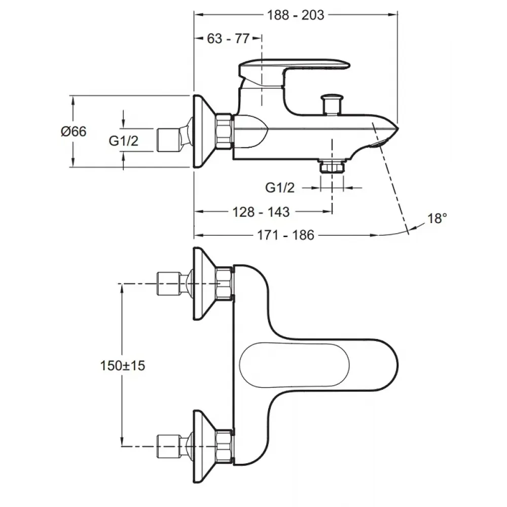 Технические характеристики Настенный смеситель Kumin неповоротный излив, с выходом на душ (без лейки) E99460-CP Jacob Delafon