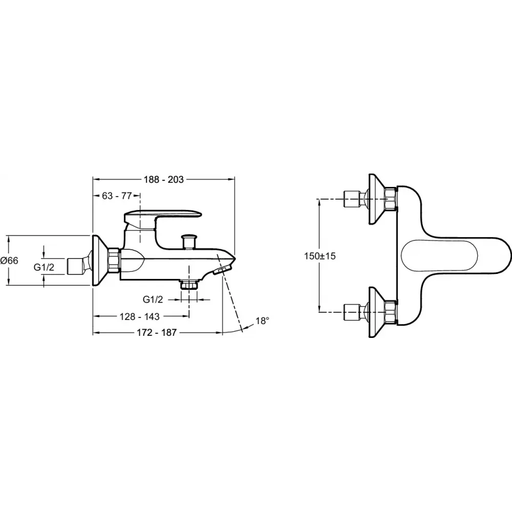Технические характеристики Настенный смеситель Kumin с выходом на душ (без лейки), неповоротный излив E1385-CP Jacob Delafon