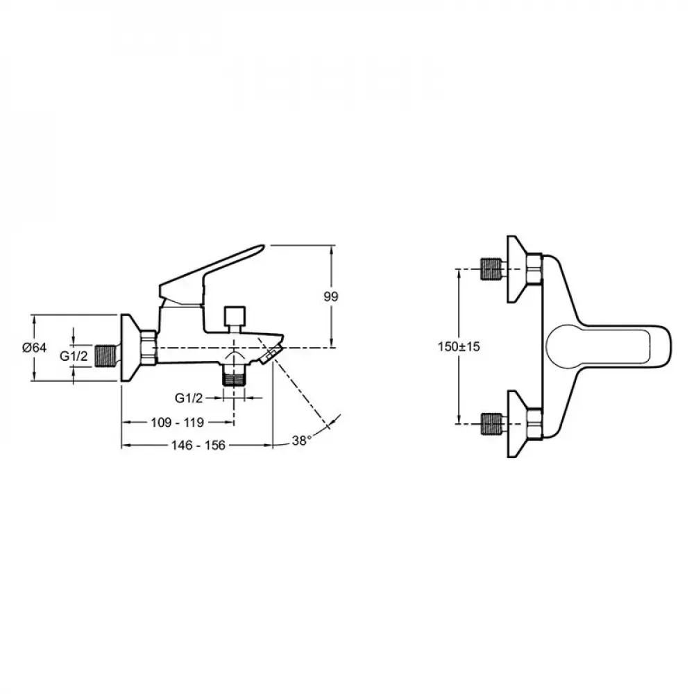Технические характеристики Настенный смеситель Lucien неповоротный излив, с выходом на душ (без лейки) E20848-CP Jacob Delafon