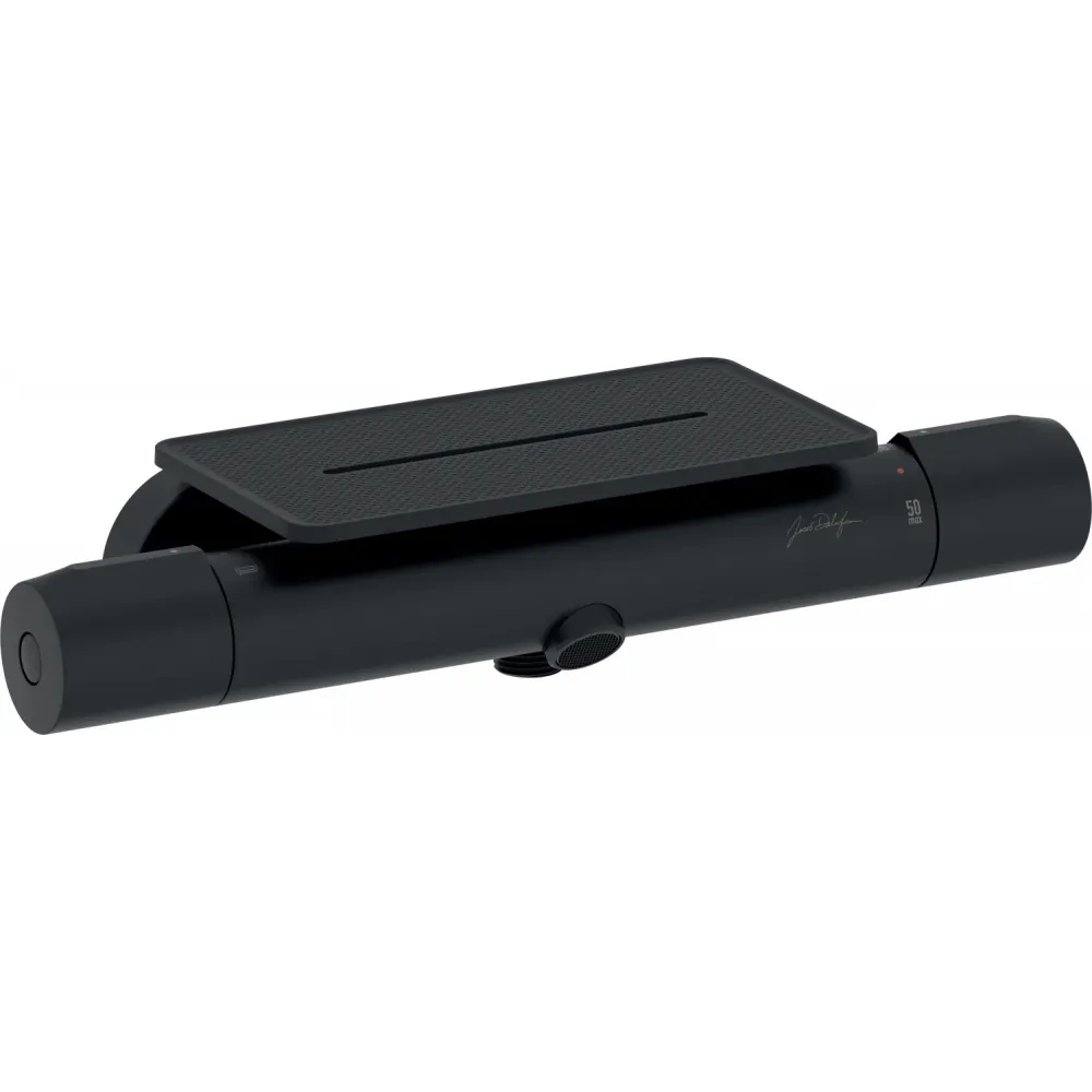 Настенный смеситель Metro с полочкой, с выходом на душ (без лейки), чёрный цвет, термостат E21768-BL Jacob Delafon