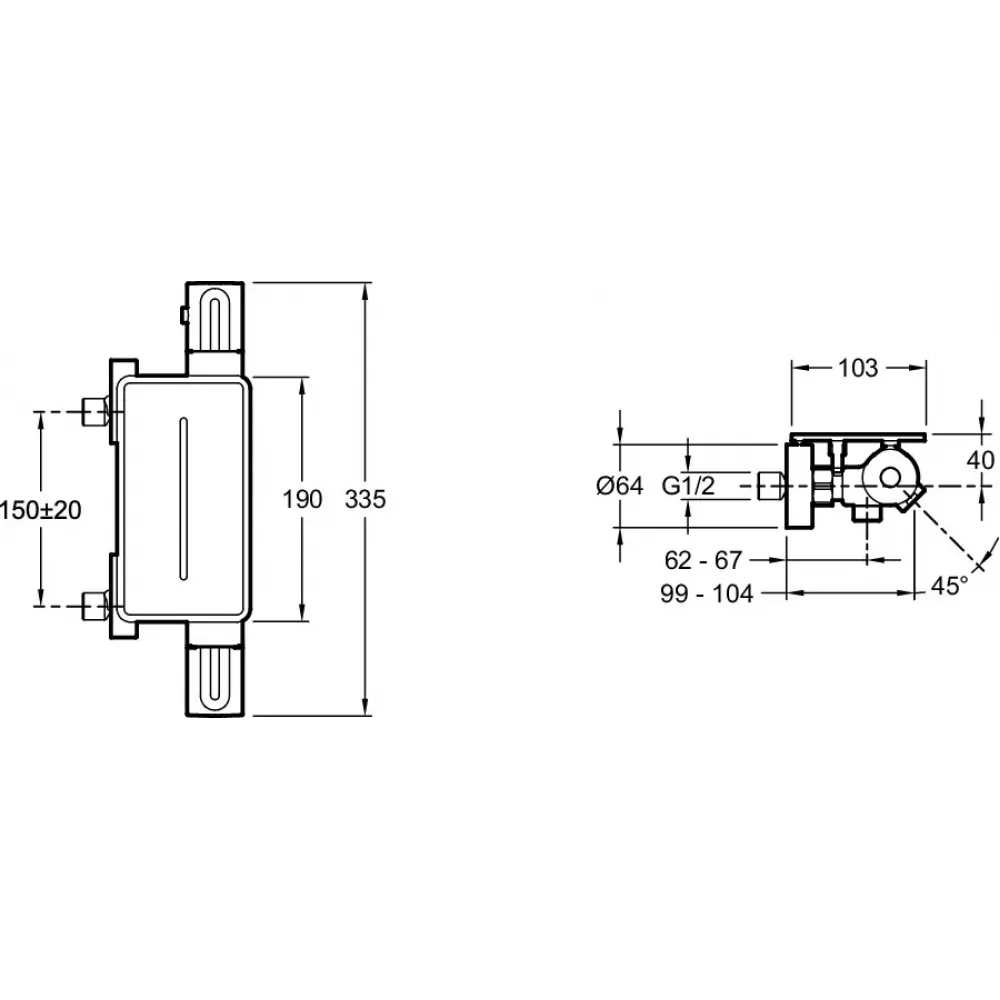 Технические характеристики Настенный смеситель Metro с полочкой, с выходом на душ (без лейки), чёрный цвет, термостат E21768-BL Jacob Delafon