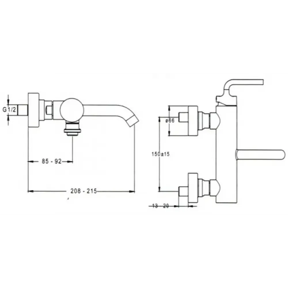 Технические характеристики Настенный смеситель Purist с выходом на душ (без лейки), неповоротный излив, термостат E14589-4A-CP Jacob Delafon