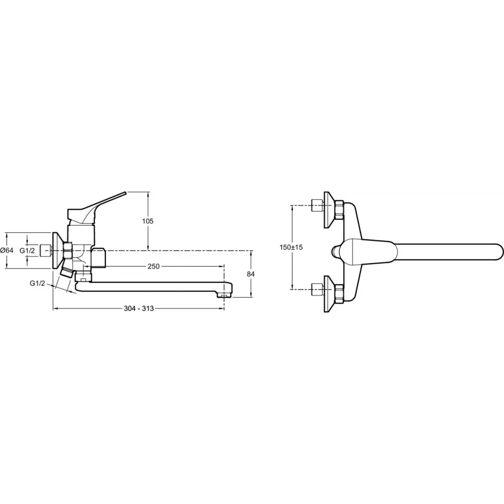 Настенный смеситель с возможностью подключения лейки (не в комплекте)
