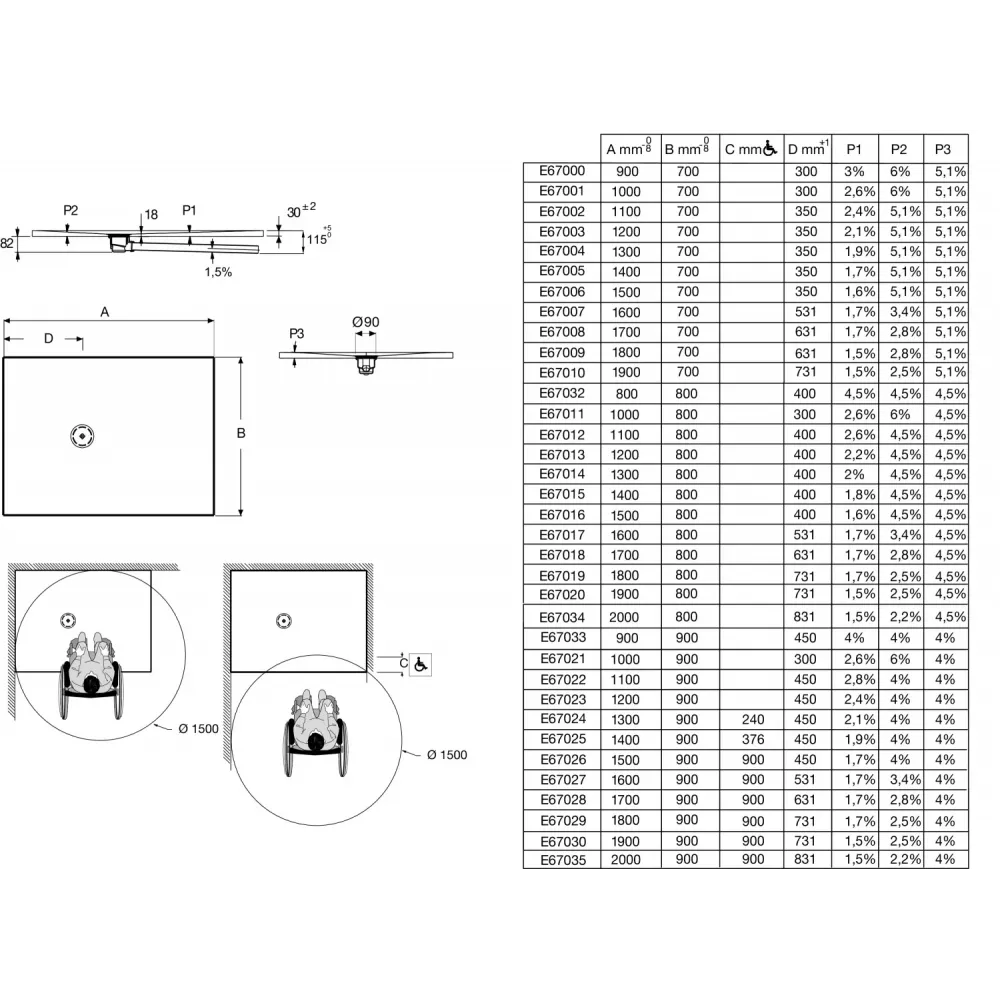 Технические характеристики Поддон Singulier 150х90х3 см, серый, Neoroc, прямоугольный E67026-NAD Jacob Delafon