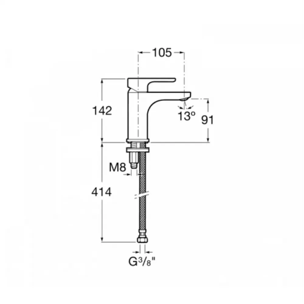 Однорычажный смеситель. установка на одно отверстие. Присоединительный размер 3/8". Высота излива 91 мм.