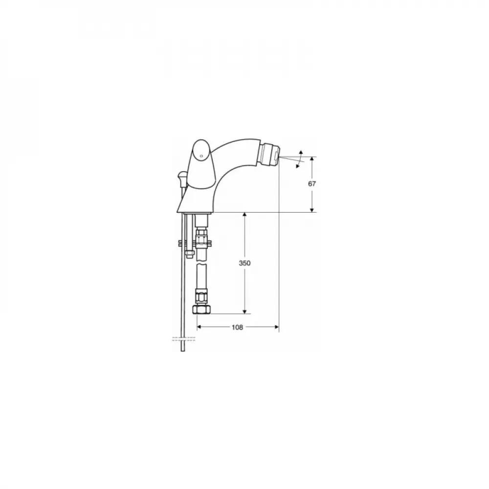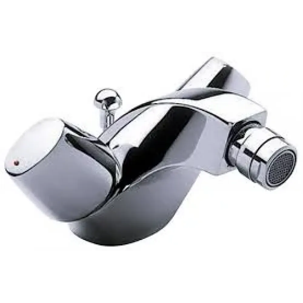 Смеситель для биде на одно отверстие, двухзахватный, с донным клапаном 1 1/4''. Вращающийся аэратор с антиизвестковым покрытием, подводка гибкая, латунный корпус, покрытие хром.
