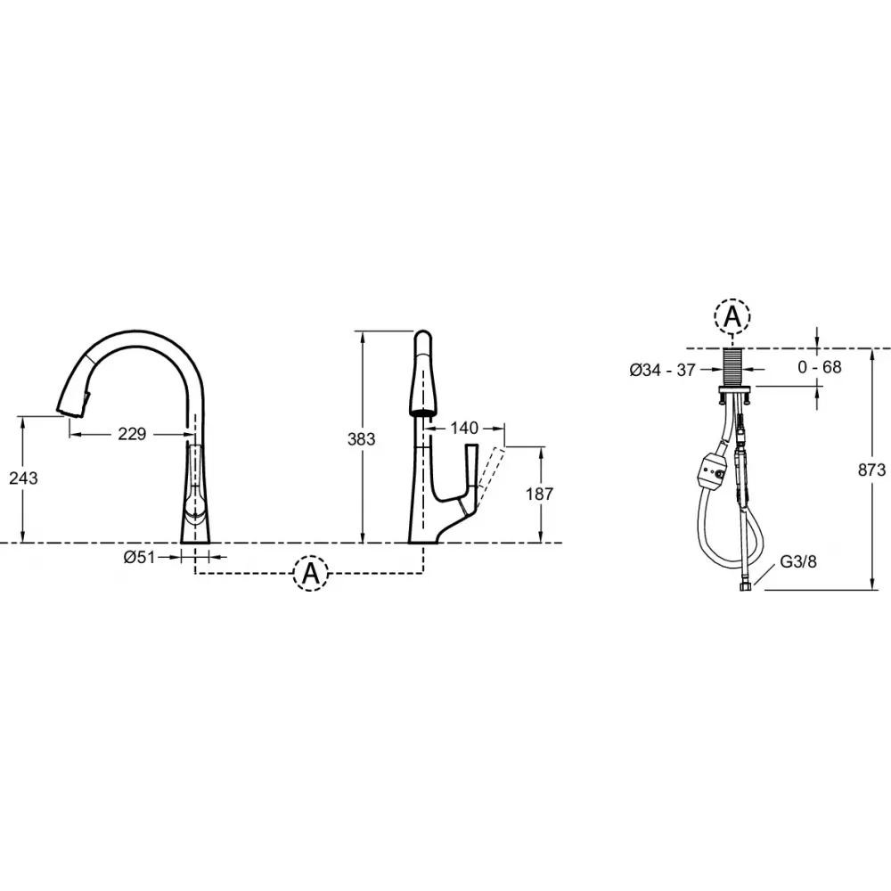 Технические характеристики Смеситель для кухни с выдвижной лейкой Malleco 2 режима, поворотный излив E562-CP Jacob Delafon