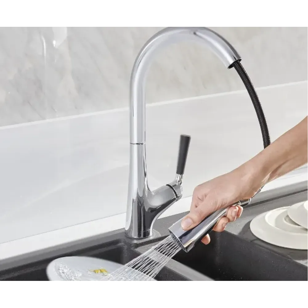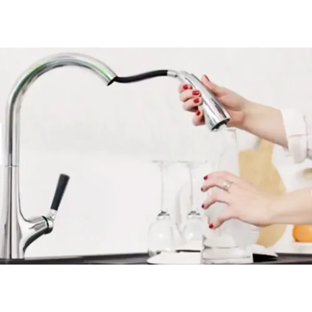 Однорычажный смеситель для кухни с вытяжным изливом.