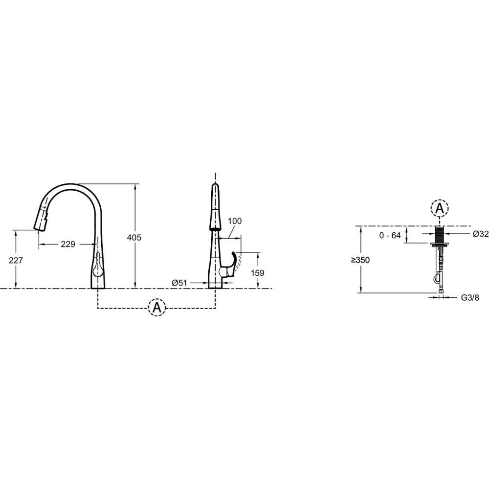 Технические характеристики Смеситель для кухни с выдвижной лейкой Simplice неповоротный излив 596D-CP Jacob Delafon