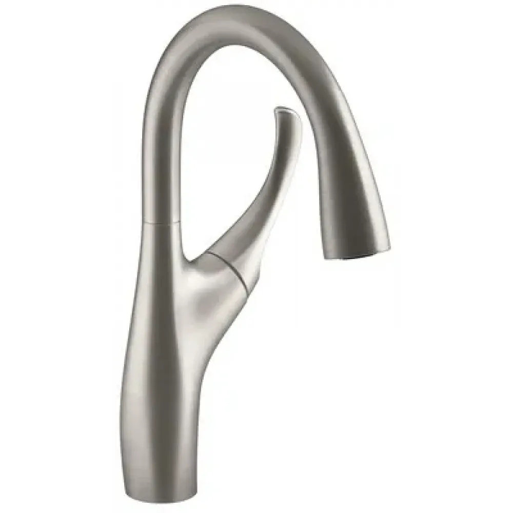 Suzanne, смеситель для кухни с выдвижной лейкой, поворотный излив, матовая сталь, двух -режимный излив, арт. E72511-VS, Jacob Delafon
