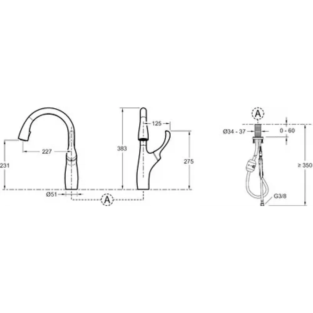 Технические характеристики Смеситель для кухни с выдвижной лейкой Suzanne матовая сталь, двух -режимный излив, поворотный излив E72511-VS Jacob Delafon