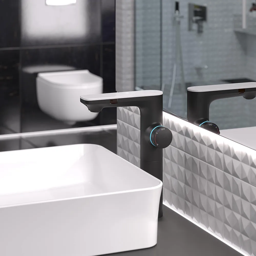 • Смеситель для раковины MORANS сенсорный высокий, черный матовый, 076004