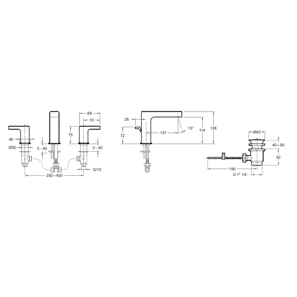 Технические характеристики Смеситель для раковины на 3 отверстия Strayt с донным клапаном E37331-CP Jacob Delafon