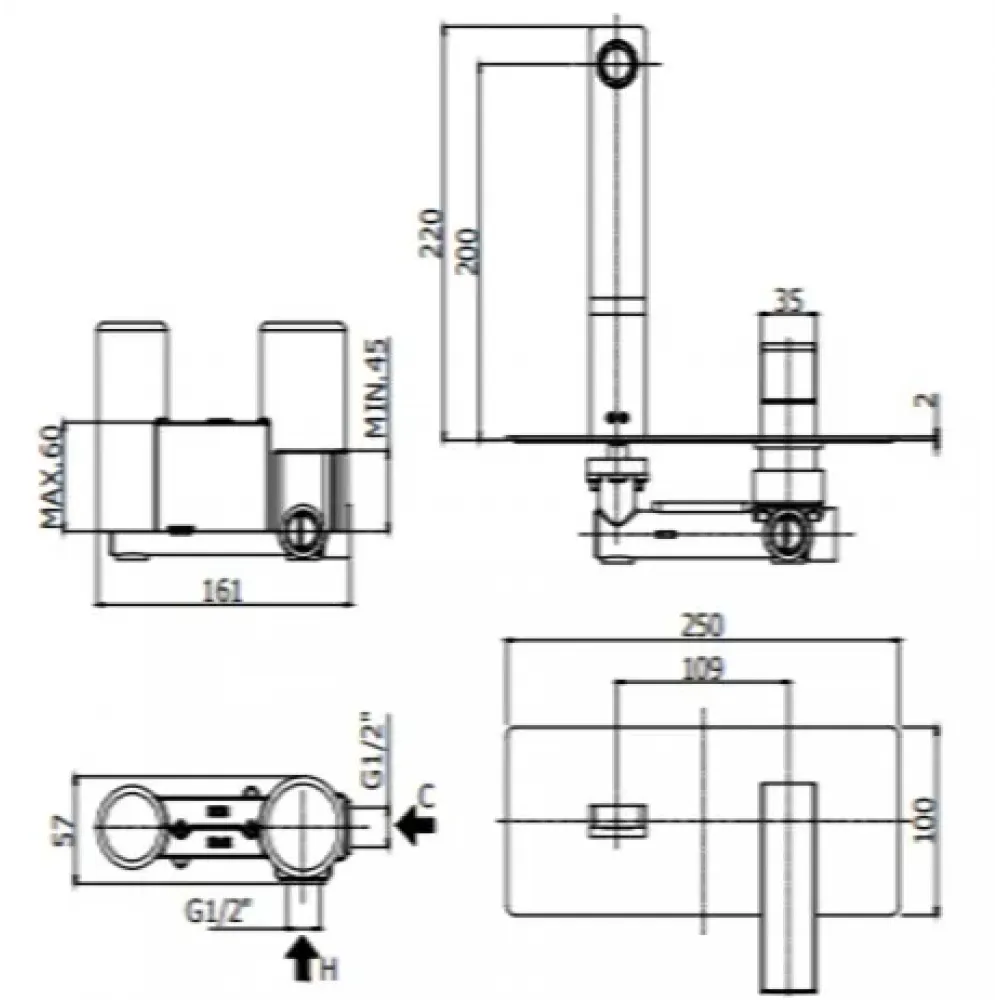 Смеситель для раковины Paffoni Elle EL105CR70 встраиваемый в комплекте с внутренней частью, с изливом 200мм с накладками 70х70мм, хром