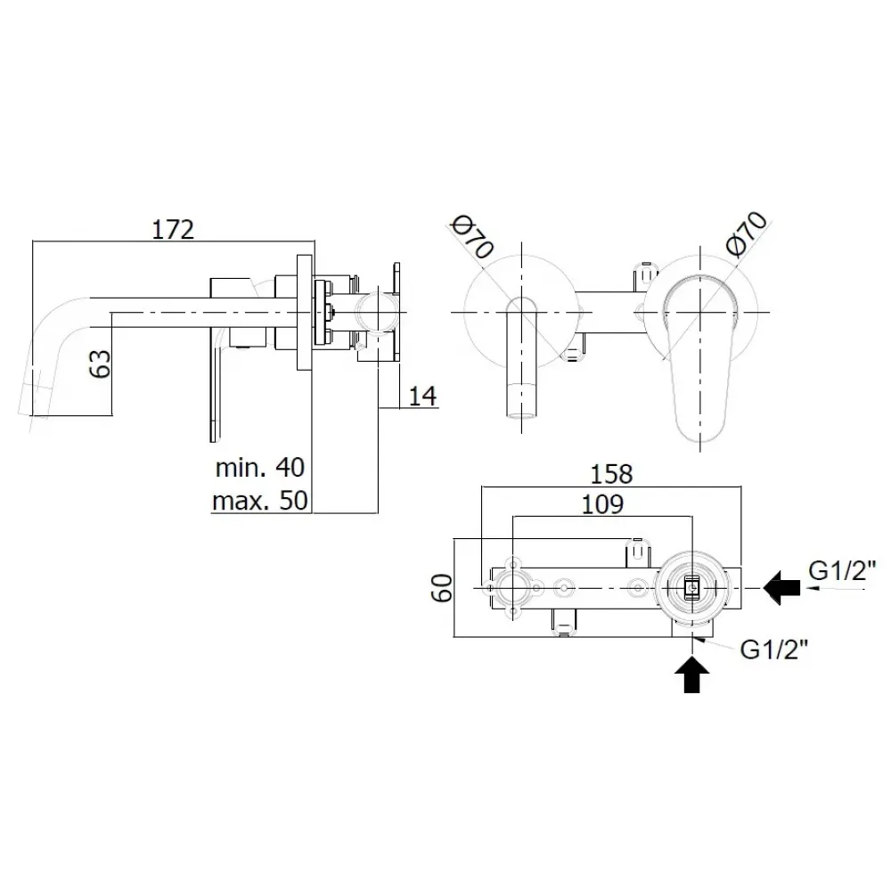 Смеситель для раковины Paffoni Green GR101CR70 встраиваемый в комплекте с внутренней частью, с накладками диаметр 70мм, излив 175мм, хром