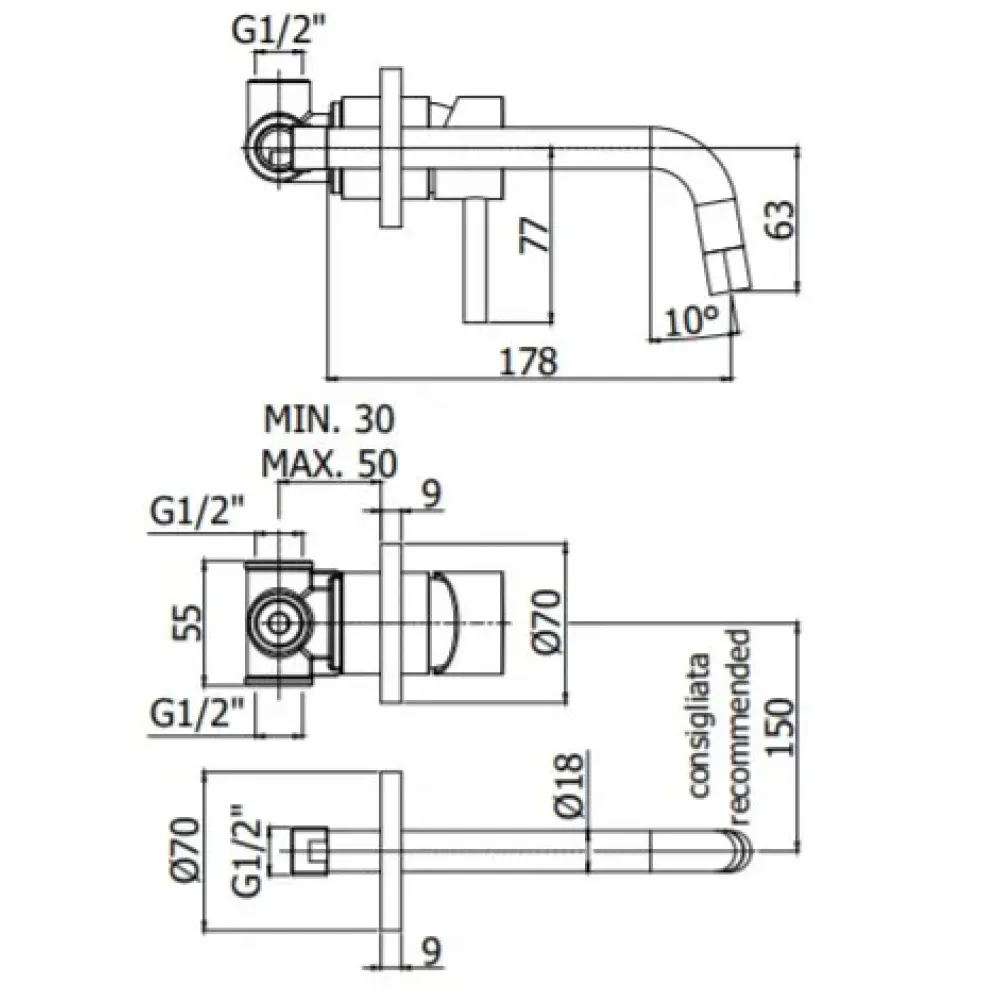 Смеситель для раковины Paffoni Light LIG006CR70 встраиваемый в комплекте с внутренней частью, накладки диаметр 70мм, излив 178мм, хром