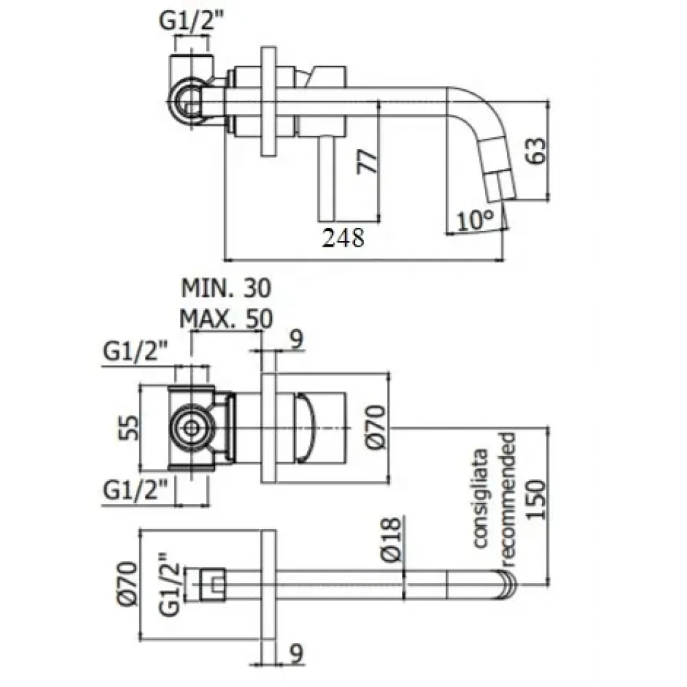 Смеситель для раковины Paffoni Light LIG007BO70 встраиваемый в комплекте с внутренней частью, накладки диаметр 70мм, излив 275мм, белый матовый