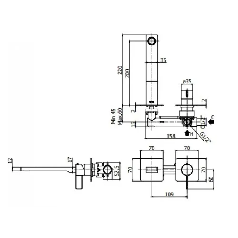 Смеситель для раковины Paffoni Rock RO105CR70 встраиваемый в комплекте с внутренней частью, с изливом 200мм, с накладками из нержавеющей стали 2 шт. 70х70мм, хром