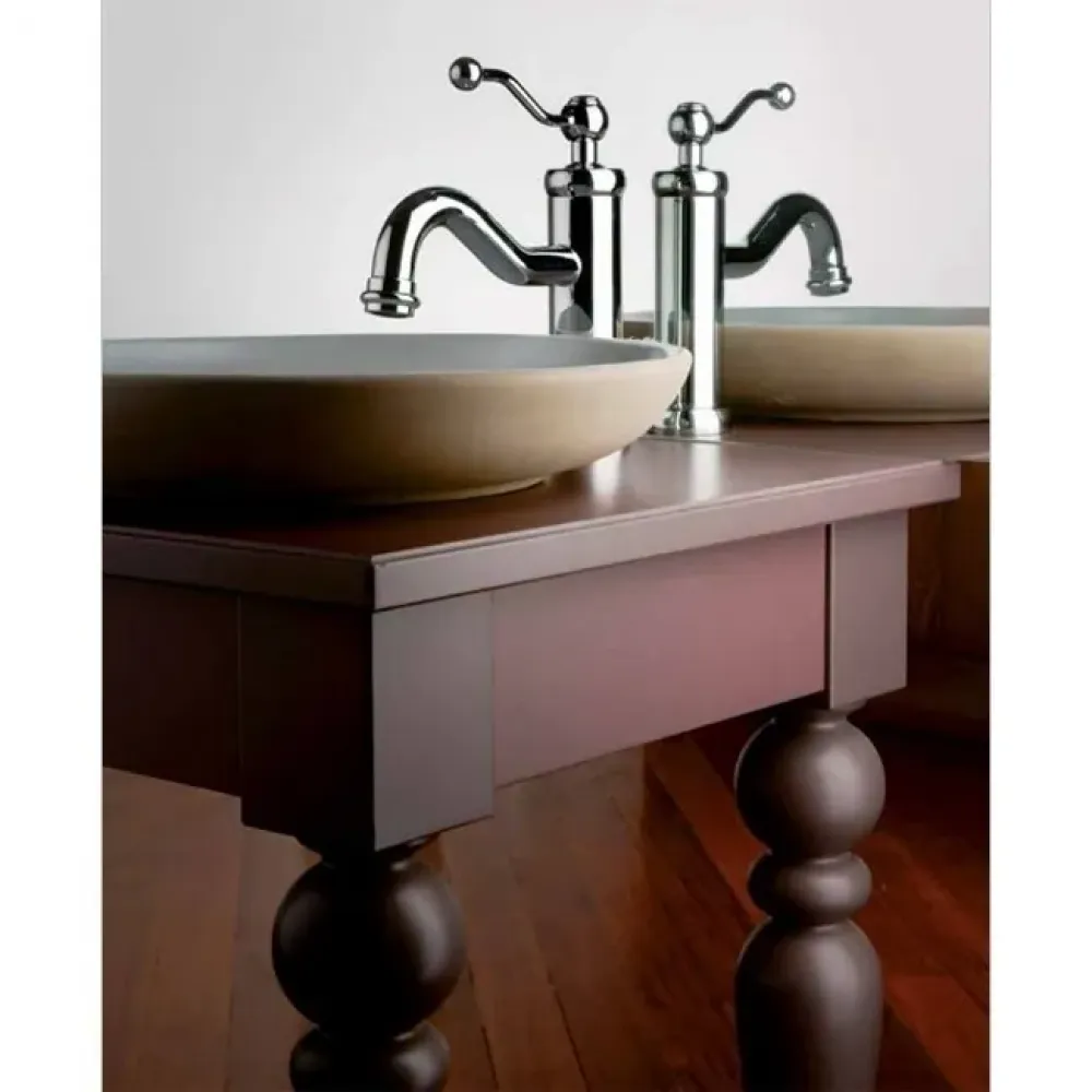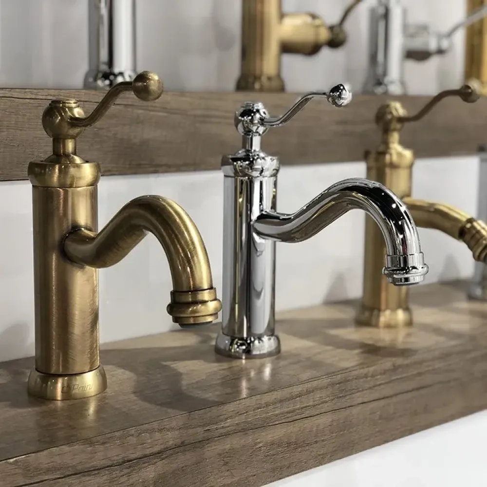 Современная сантехника для дома в стиле винтаж превосходно справляется как с эстетическим, так и функциональным назначением. Такие элементы не только радуют глаз, но и надежно служат в течении ни одного десятилетия. Винтаж в интерьере это стиль близкий к классике, но предусматривает решения в виде современных отделочных материалов и некоторых конструкций. Бетон, стекло, сталь, характеризующие современность, можно разбавить теплыми оттенками дополнительных винтажных аксессуаров. Например, мебель из светлого дерева или PAINI DUOMO в цвете состаренная бронза.