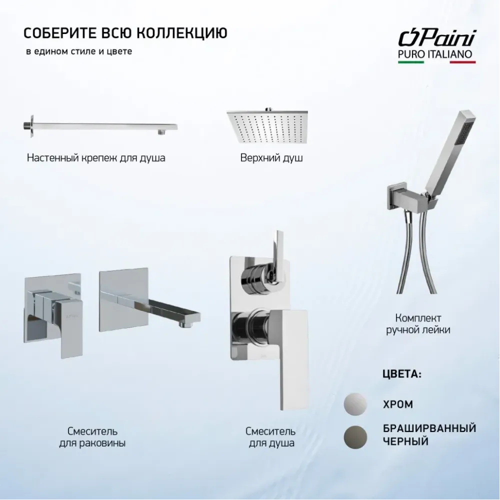 Встраиваемый смеситель для раковины своей прямоугольной формой напоминает архитектурный шедевр. Встраиваемые смесители PAINI поставляются в полном сборе - внутренняя и внешняя часть.