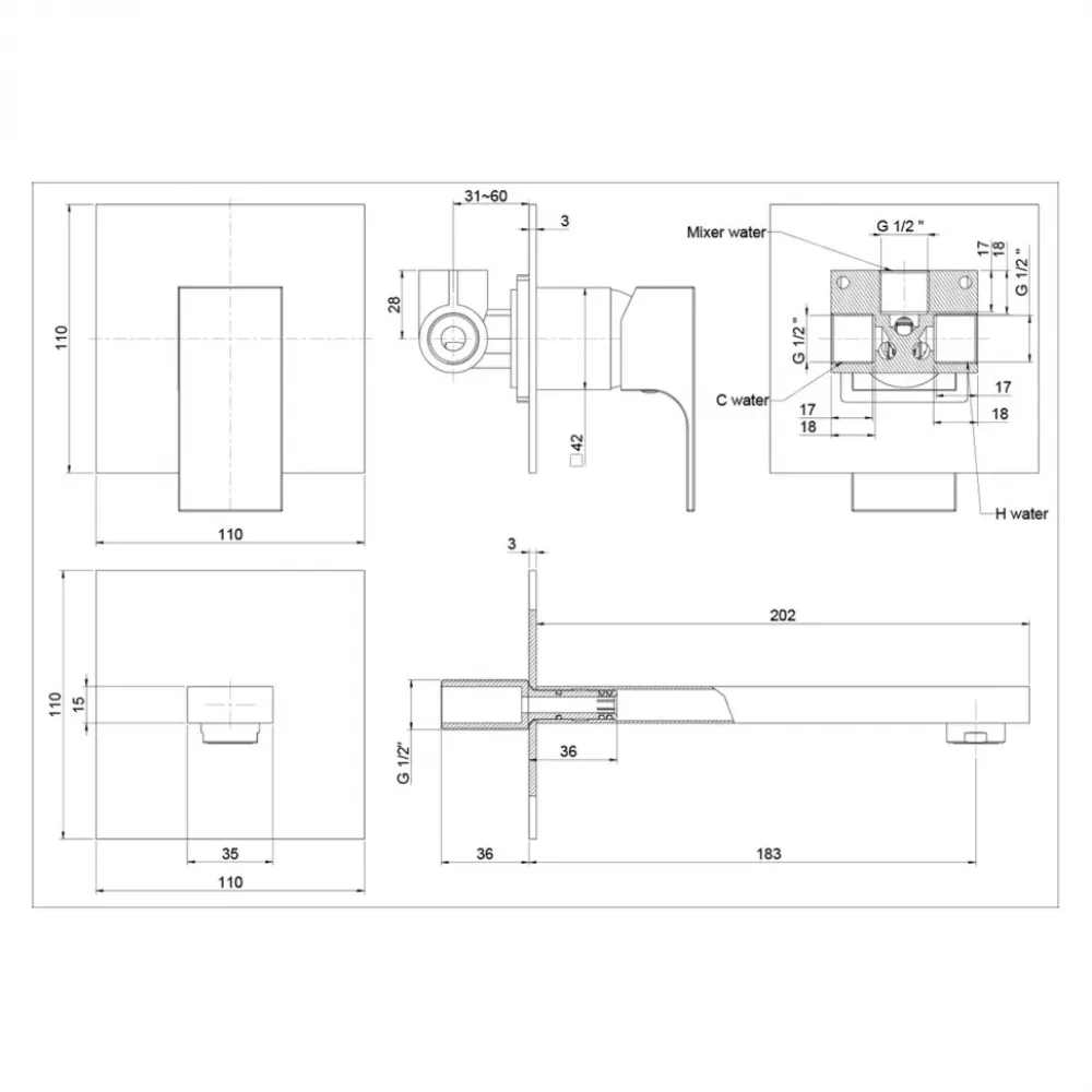 | Тип изделиясмеситель встраиваемый для раковины | Тип управления клавишейоднорычажный | Формаквадратная |