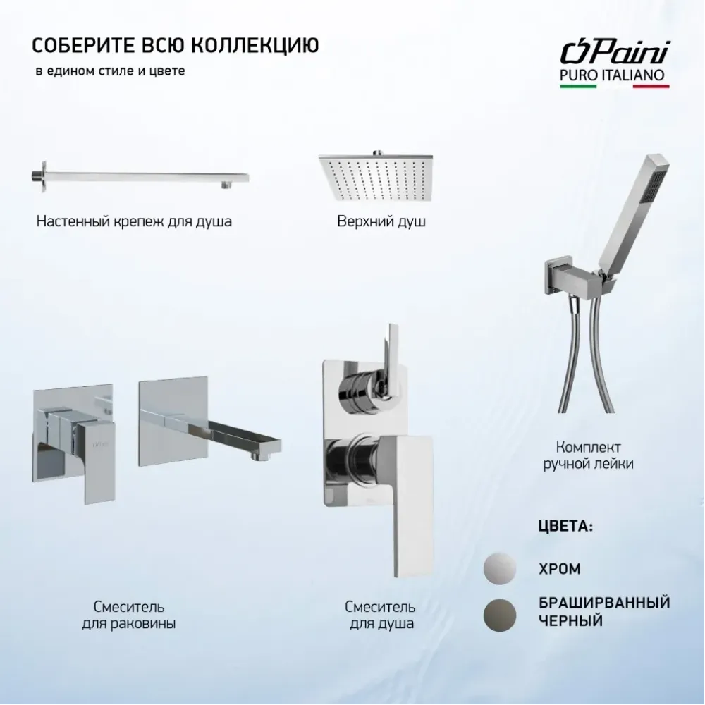 Встраиваемые смесители PAINI поставляются в полном сборе - внутренняя и внешняя часть. Геометрия смесителей GRAZIA органично дополнит интерьер в стиле фьюжн, классика, хай-тек, а также прекрасно подойдет для ванной в португальском стиле оформления.