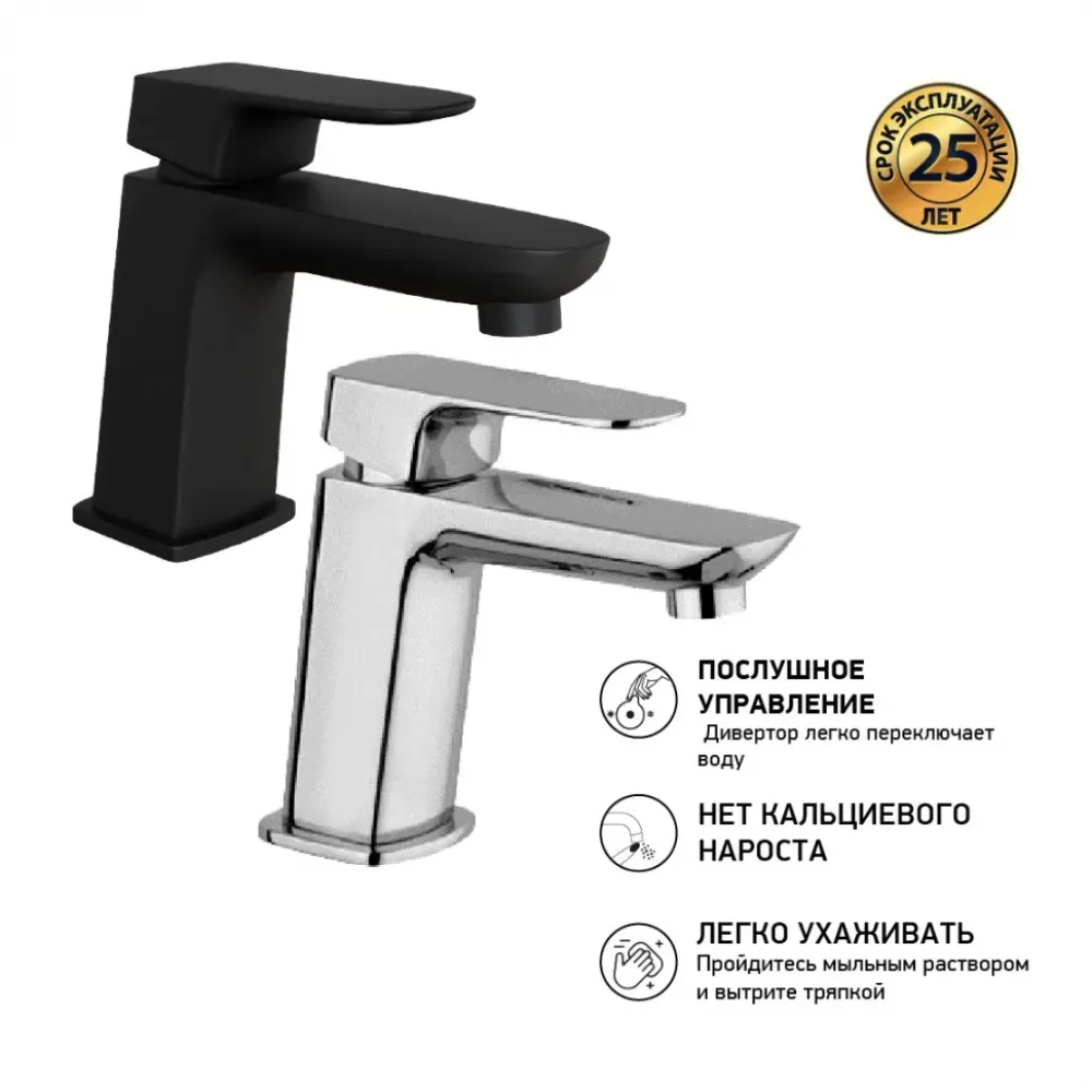 Авторская коллекция итальянского дизайнера Mirko Bosio - Nove. Смеситель коллекции Nove выполнен в акцентной геометрической форме, что можно отнести как к нестандартному конструктивному решению, так и к элементу шика. Широкая ручка рычага элегантно сочетается с квадратным корпусом. Дизайн однорычажного смесителя поддержит скандинавский стиль оформления ванной комнаты или любое иное, выбранное вами, направление минимализма.
