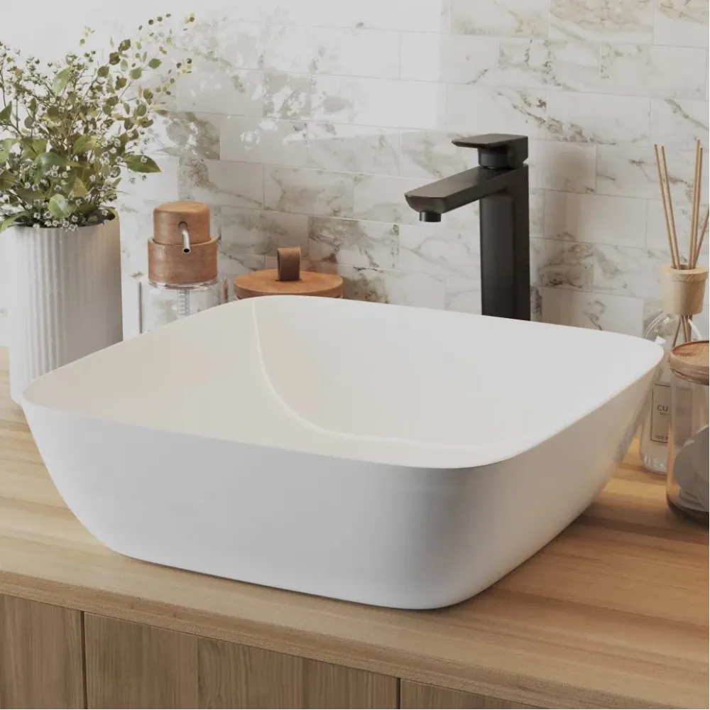 Авторская коллекция итальянского дизайнера Mirko Bosio - Nove. Смеситель коллекции Nove выполнен в акцентной геометрической форме, что можно отнести как к нестандартному конструктивному решению, так и к элементу шика. Широкая ручка рычага элегантно сочетается с квадратным корпусом. Дизайн однорычажного высокого смесителя поддержит скандинавский стиль оформления ванной комнаты или любое иное, выбранное вами, направление минимализма. Благодаря высокому корпусу смеситель Nove идеально сочетается с накладными глубокими раковинами-чашами различного размера, а так же подойдет для использования на широких встроенных и подвесных раковинах.