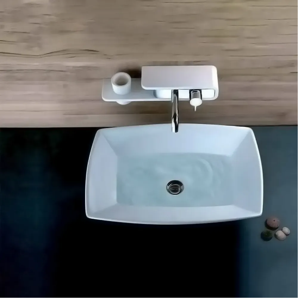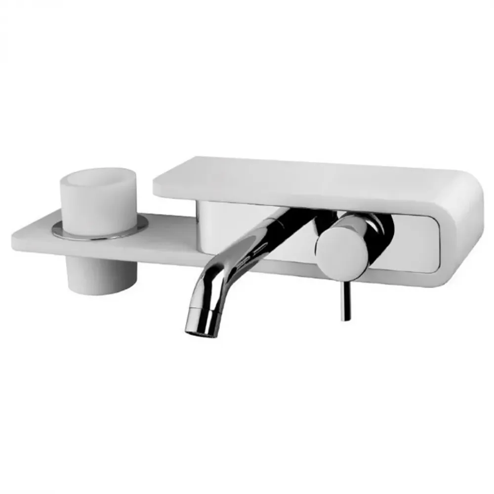 Функциональная полочка со стаканчиком для гигиенических принадлежностей является гармоничным продолжением корпуса смесителя для раковины скрытого (встроенного) монтажа, создавая завершенный современный дизайнерский образ.